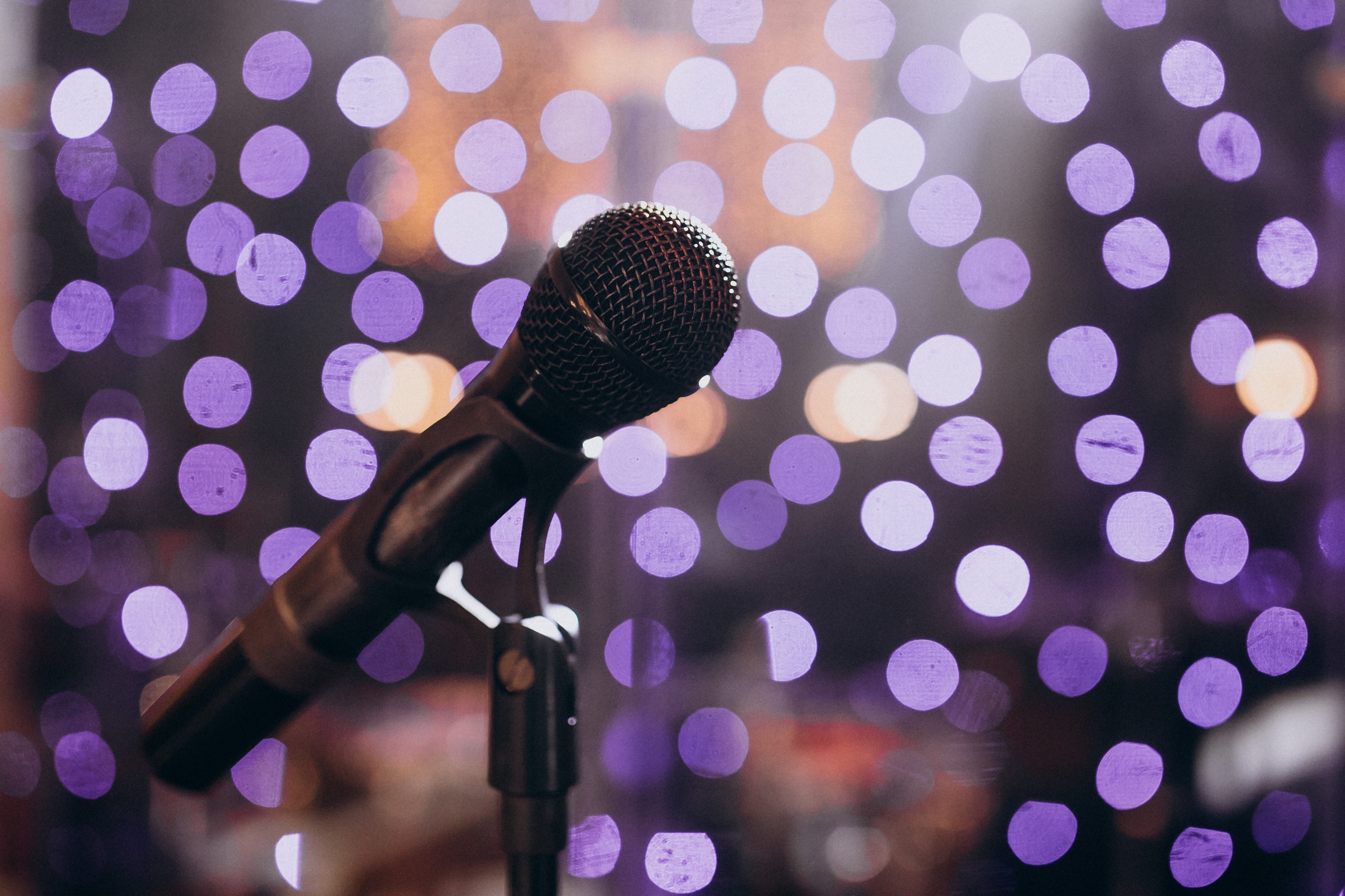 마이크, 테이블, 의자부터 조명과 바닥까지